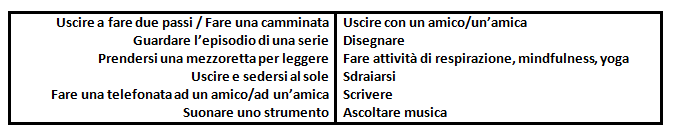 Una piccola nota: non figura la voce “scrollare sui social”. Chiaramente anche questa può essere una pausa per “svagare la mente”, tuttavia i social sono un altro posto che tipicamente arriva a bombardarci di stimoli, pensieri, cose da fare, confronti, notizie che ci attivano… Per cui certo svagarsi sui social può essere una modalità, ma non l’unica o la sola, perché probabilmente non è realmente un momento che ci prendiamo per stare con noi stessi o con gli altri senza dover “produrre” o “dimostrare” niente